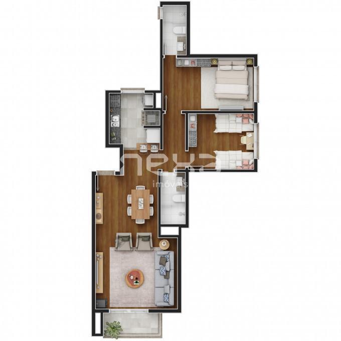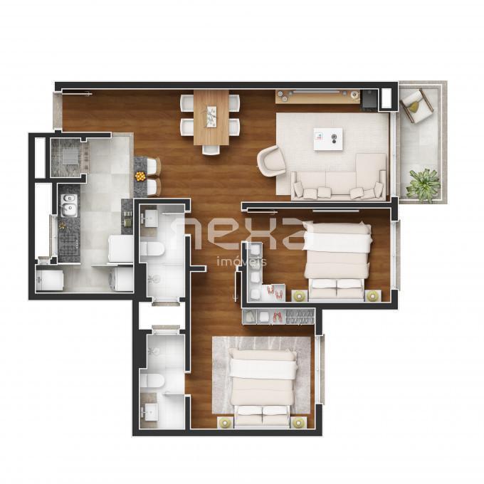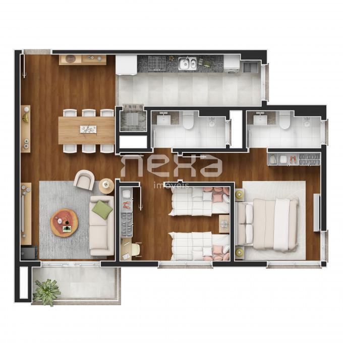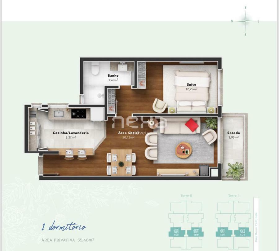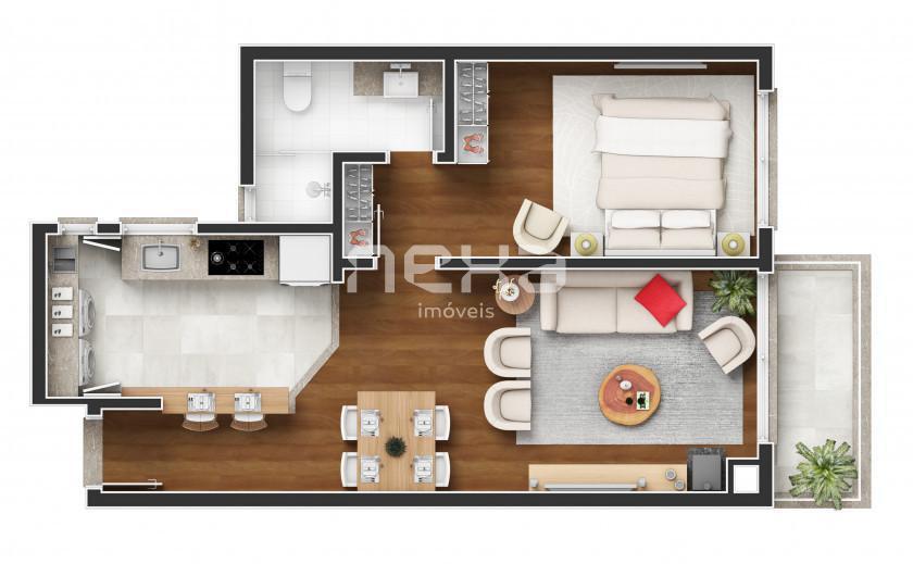 Composto por 02 dormitórios sendo 01 suíte, living 02 ambientes com jantar e com sacada, cozinha com churrasqueira, lavanderia e 01 vaga de garagem!