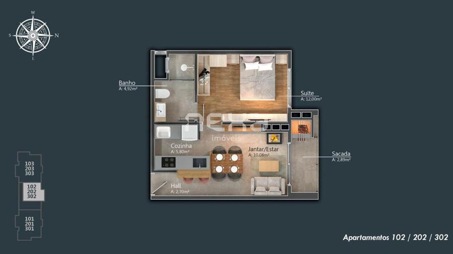 Apartamento composto por 02 dormitórios sendo 01 suíte, banho social, living com jantar e sacada gourmet, cozinha americana e lavanderia, 01 vaga de garagem coberta!