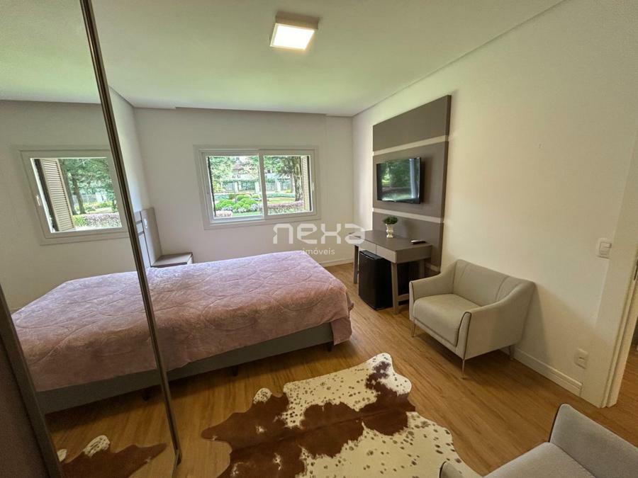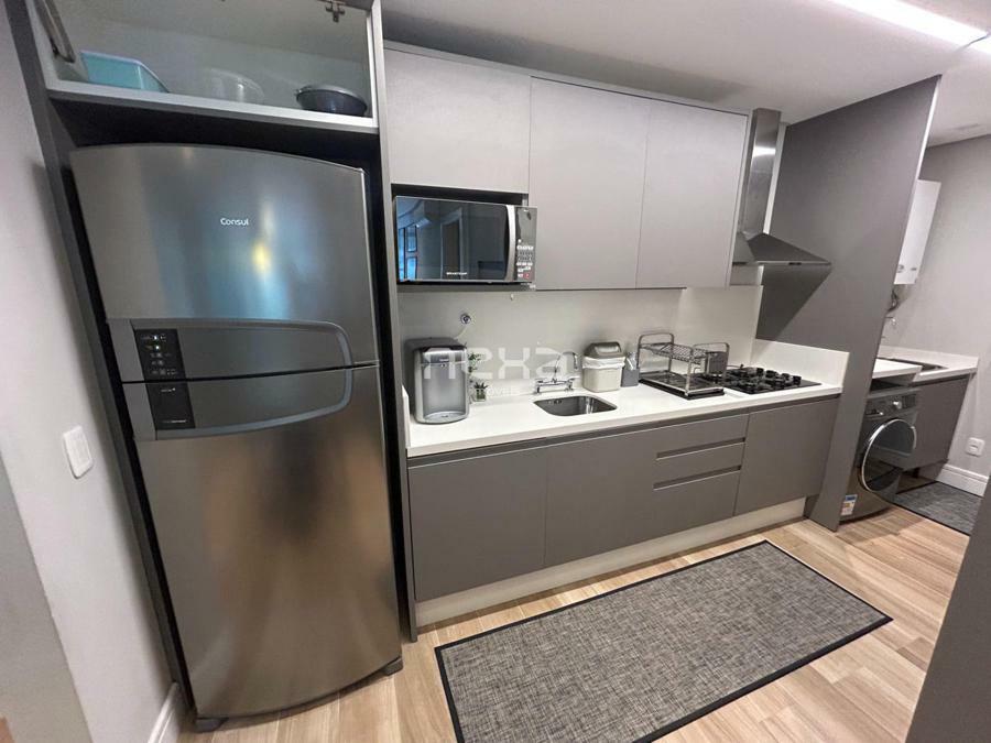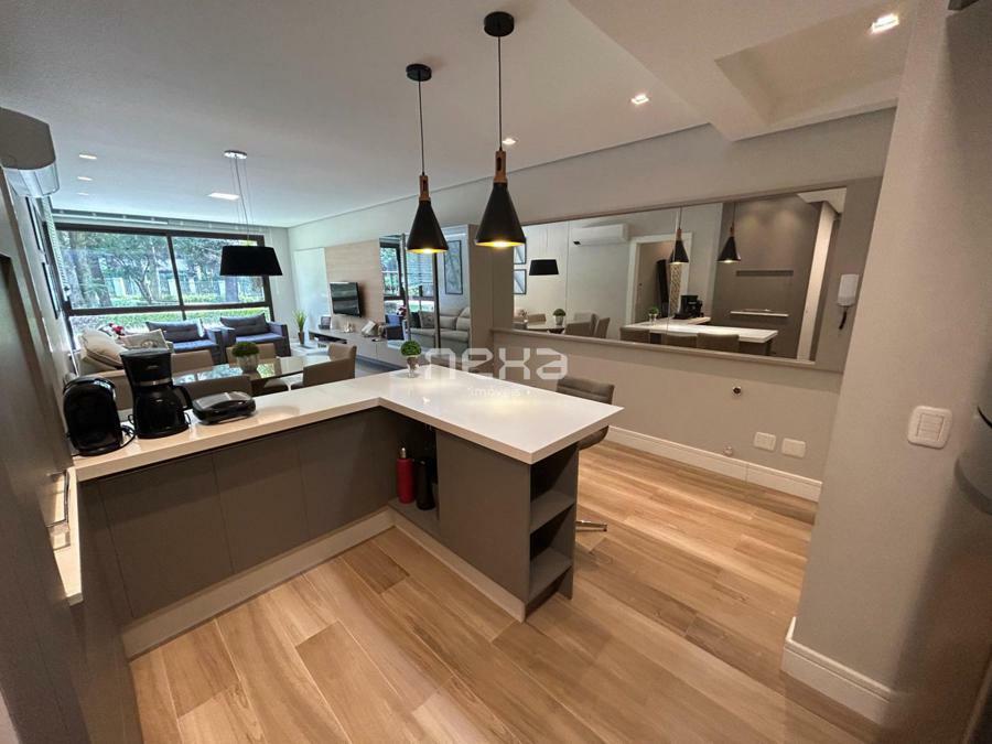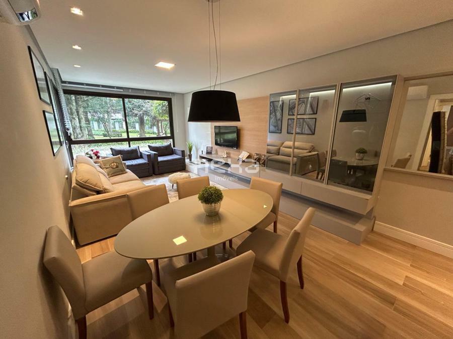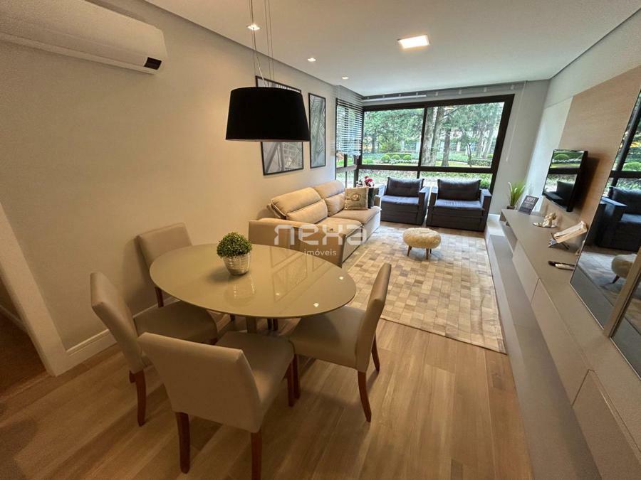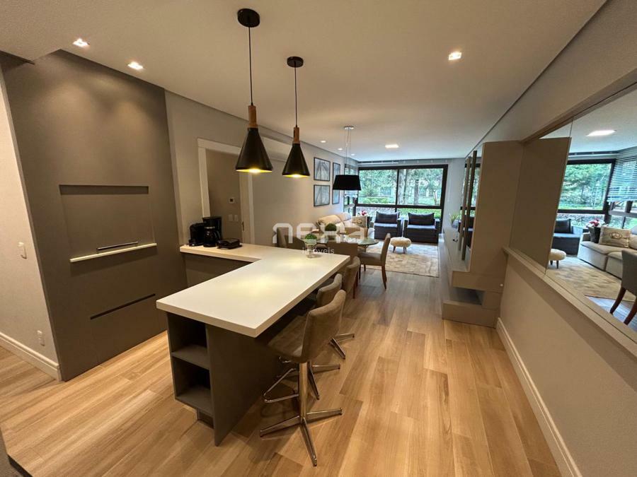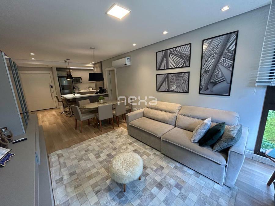Totalmente mobiliado, equipado e decorado, conta com 02 dormitórios sendo 01 suíte, banho social, living integrado com jantar, lareira, cozinha com espaço gourmet e lavanderia. Splits instalados dos dormitórios e living. 01 vaga de garagem com depósito.