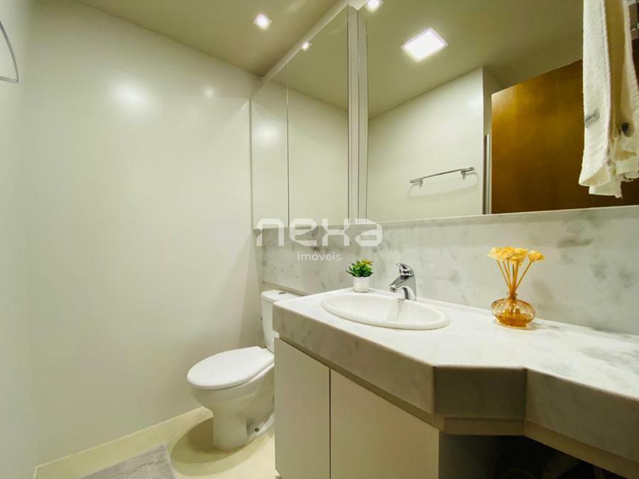 O apartamento também conta com ar-condicionado, cozinha americana com churrasqueira, banho social, esquadrias em PVC, que são mais duráveis e eficientes em termos de isolamento térmico e acústico, e espera para calefação, que permite a instalação de um sistema de aquecimento central.