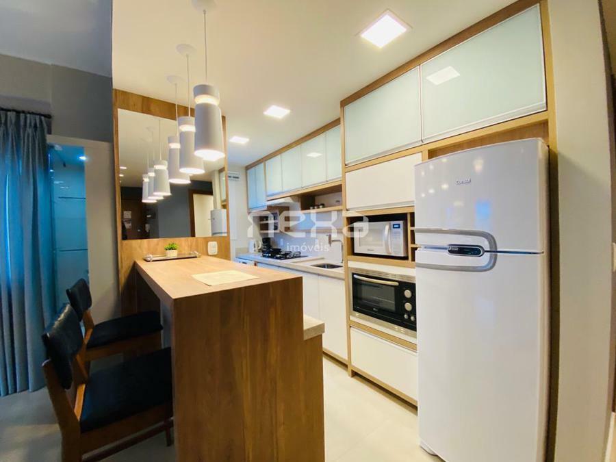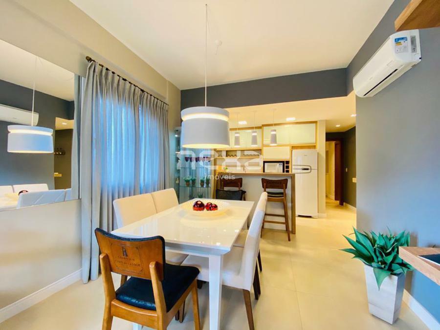 Apartamento mobiliado, equipado e decorado, o que pode ser uma grande vantagem para quem procura por praticidade e comodidade. Ele possui dois dormitórios, sendo um deles uma suíte, o que garante privacidade e conforto. O living é integrado com a sala de estar e jantar, o que cria um ambiente aconchegante para receber visitas ou passar tempo em família.