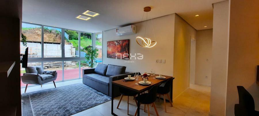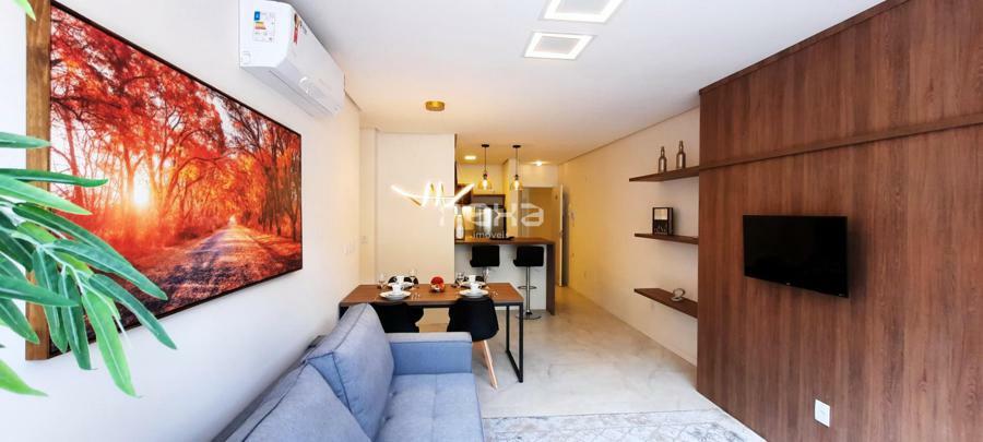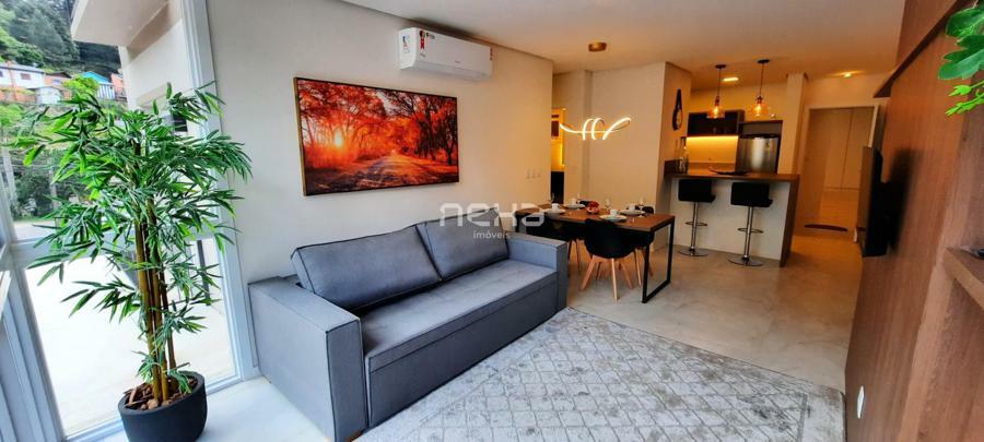 Apartamento totalmente mobiliado, decorado e equipado. Composto por 2 suítes, lavabo, cozinha, living integrado com jantar, churrasqueira e ótima posição solar!
