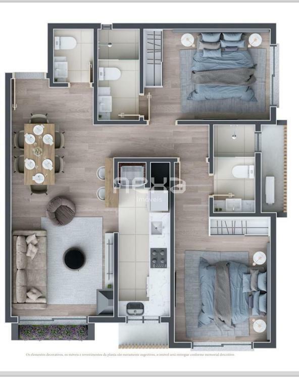 Apartamento em fase final de obras composto por 2 suítes, lavabo, com cozinha americana com churrasqueira, espera para lareira, espera para split no living e nos dormitórios, espera para calefação e água quente, tomadas USB, acesso ao apartamento com fechadura digital e esquadrias de PVC.