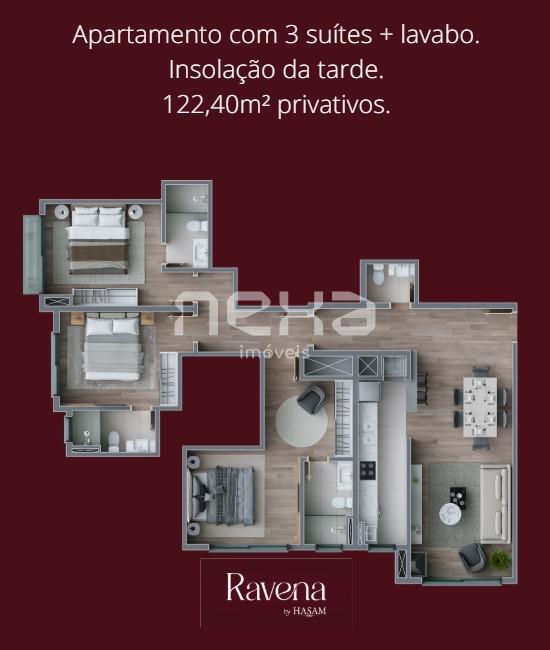 Apartamento com 122,40m² privativos composto por 03 suítes, lavabo, living integrado com jantar e sacada, cozinha com churrasqueira, lavanderia e 01 vaga de garagem!