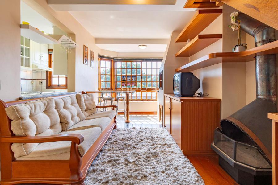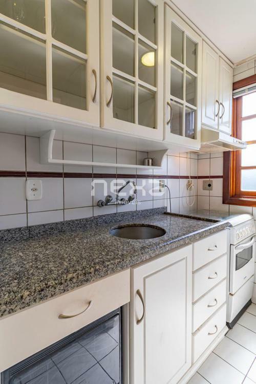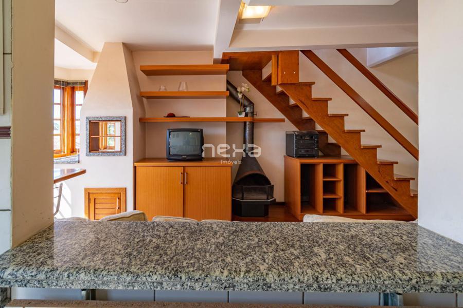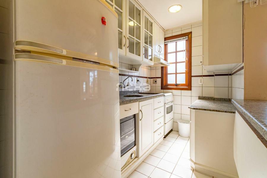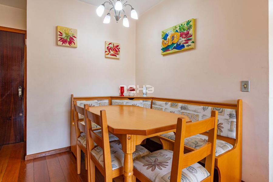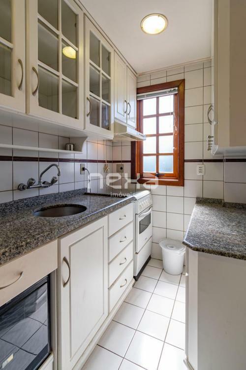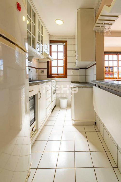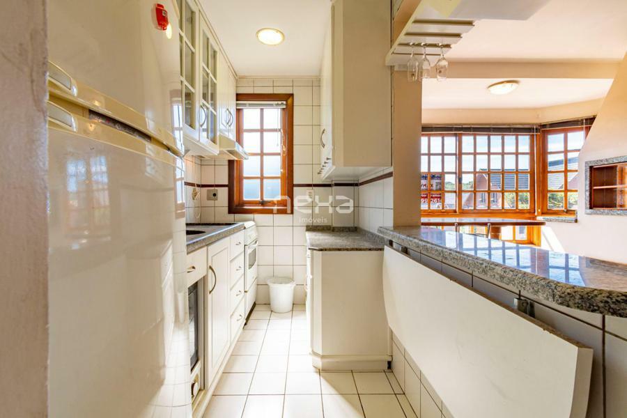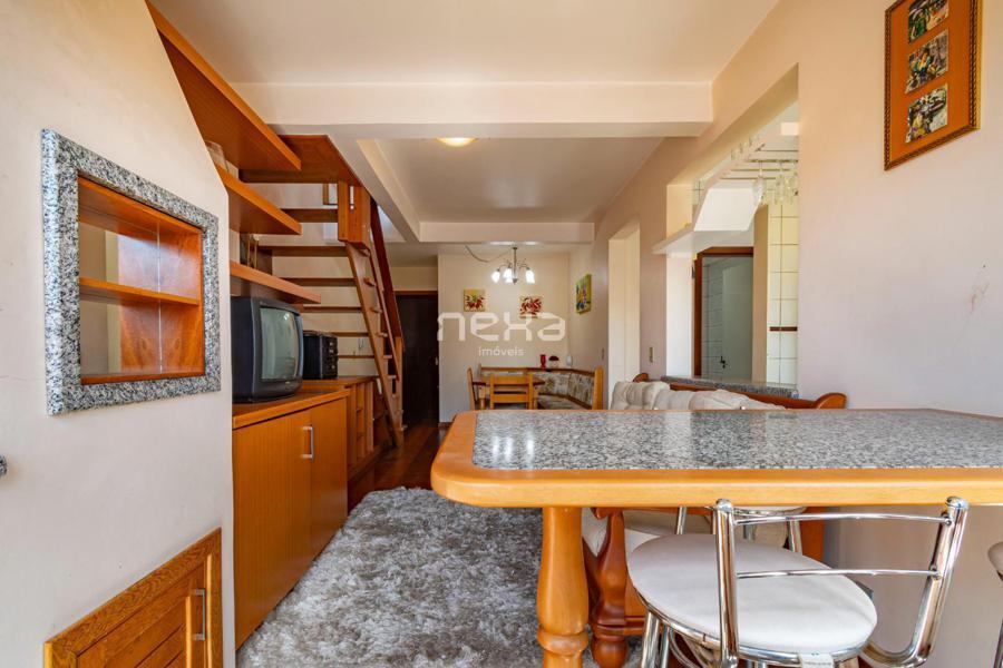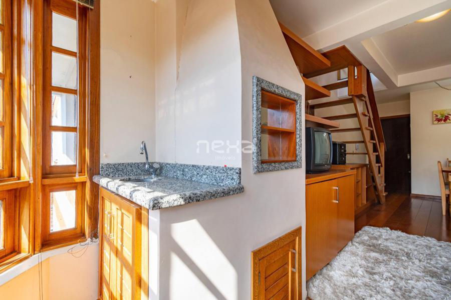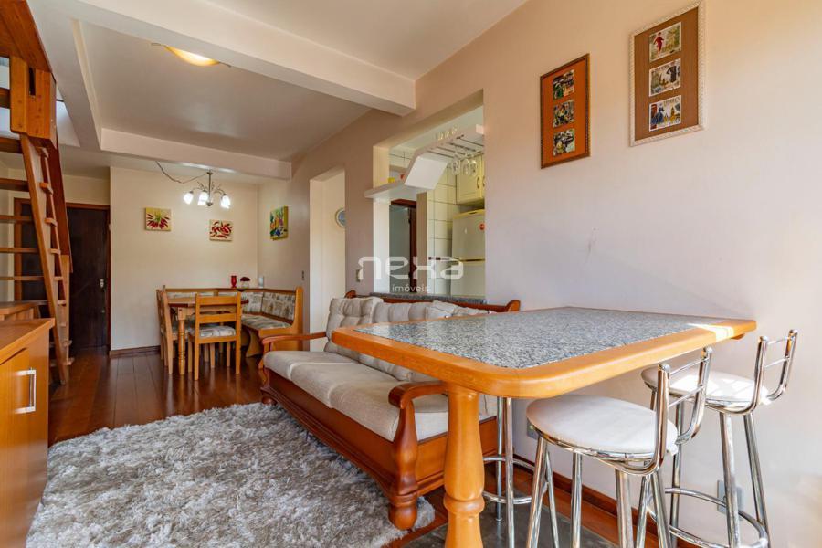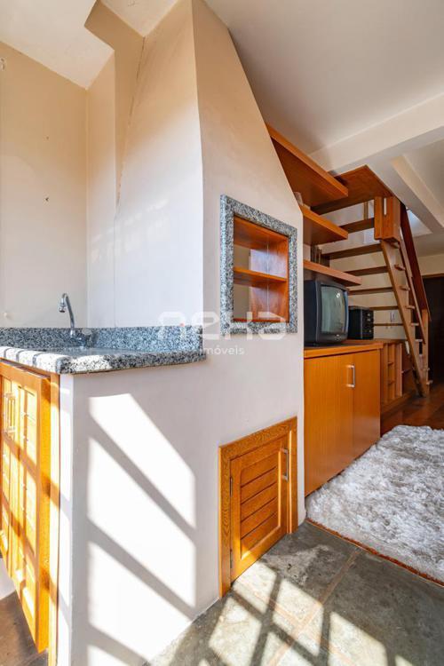 Apartamento Duplex com 3 dormitórios sendo 1 suíte, banheiro social, sala de jantar, churrasqueira com vista para a rua São Pedro, cozinha, piso cerâmico na cozinha e banheiros.