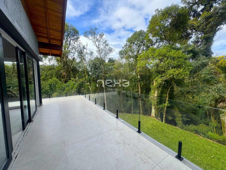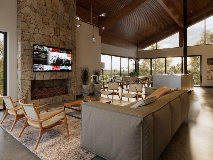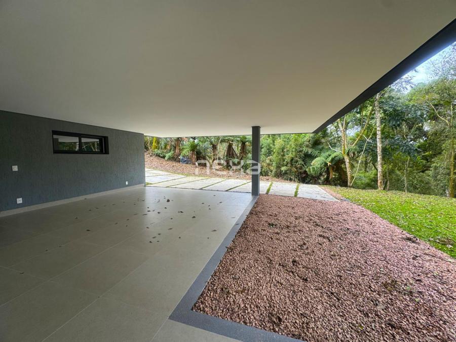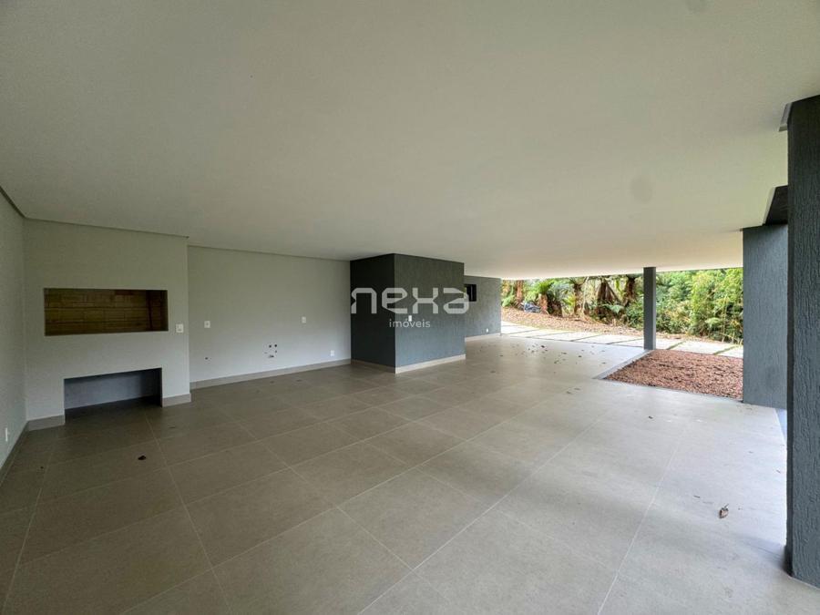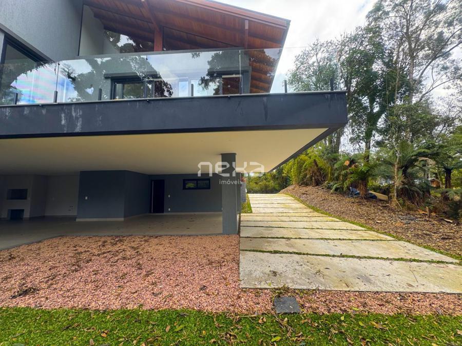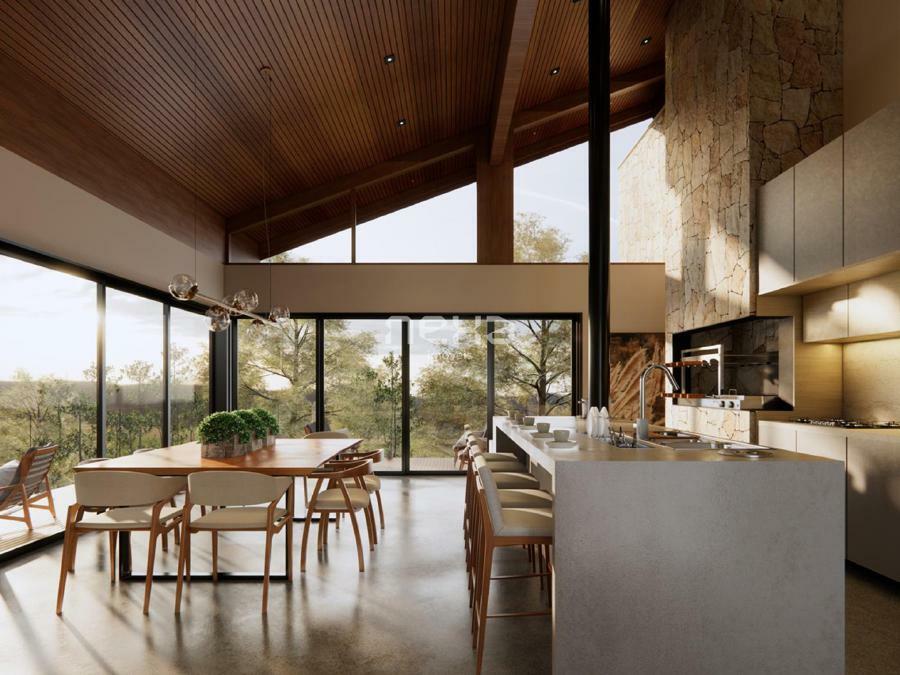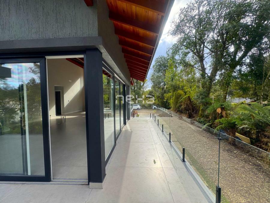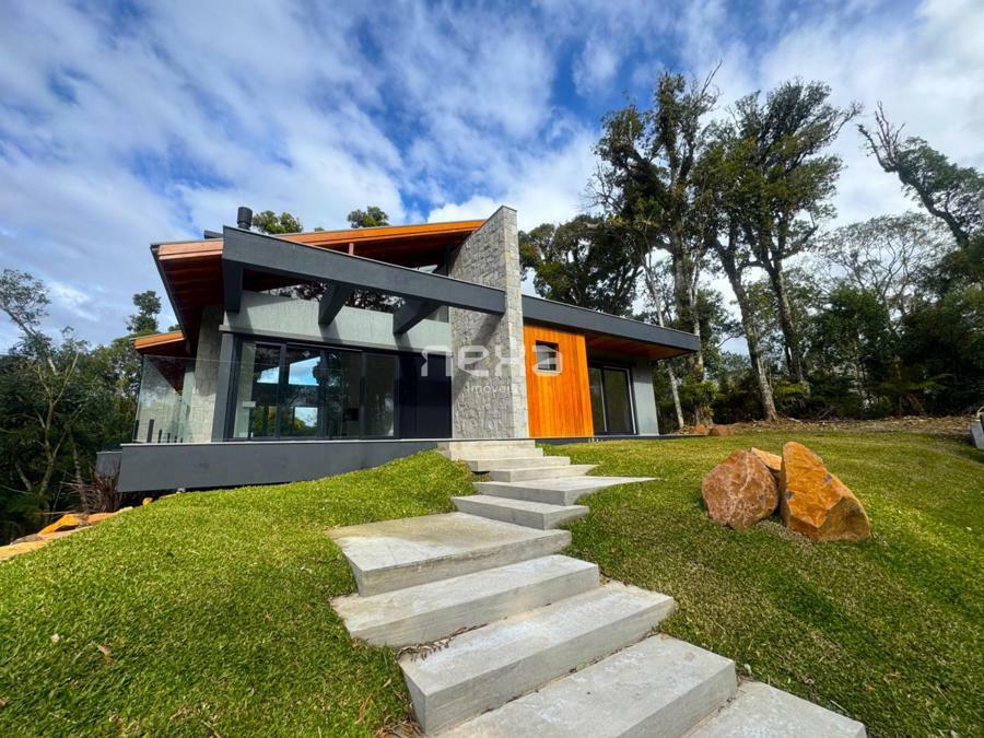 No térreo, living 2 ambientes em conceito aberto com pé direito elevado e amplas esquadrias com vidros duplos. Lareira e piso aquecido em toda a casa garantem o conforto térmico nos dias frios. O destaque fica para a cozinha com churrasqueira e espera para fogão campeiro rodeada pela varanda com vista para o verde, além de 3 amplas suítes.