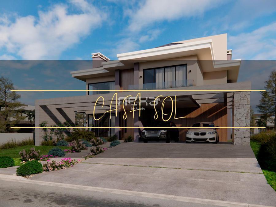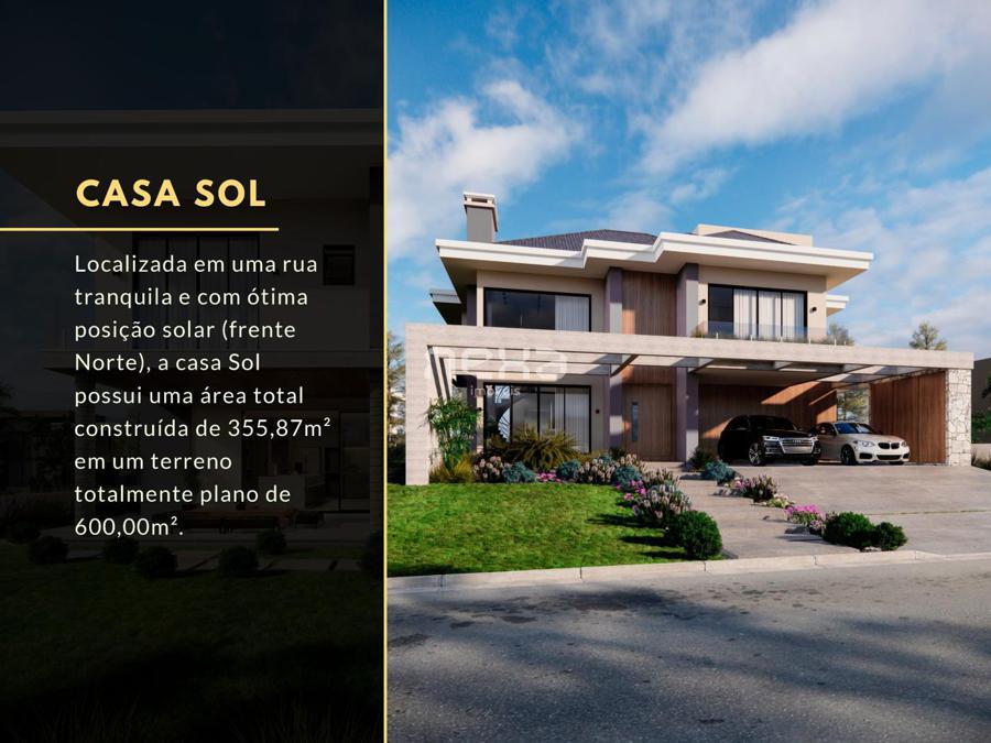 Localizada em uma rua tranquila e com ótima posição solar (frente Norte), a casa Sol possui uma área total construída de 355,87m² em um terreno totalmente plano de 600,00m².