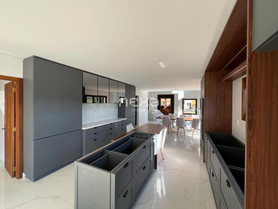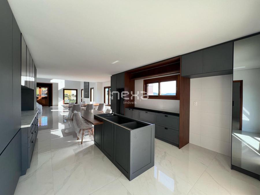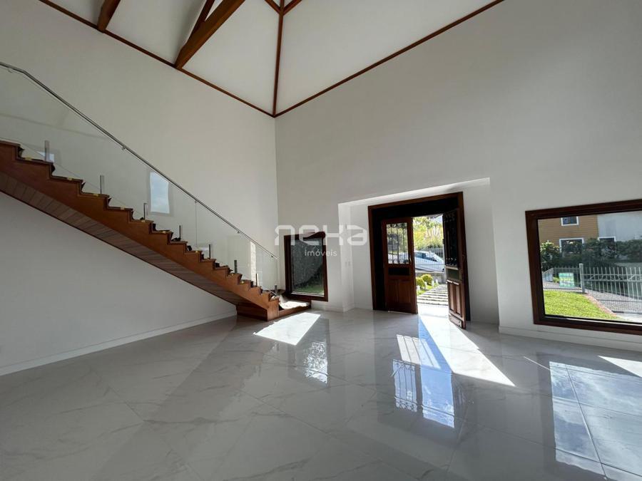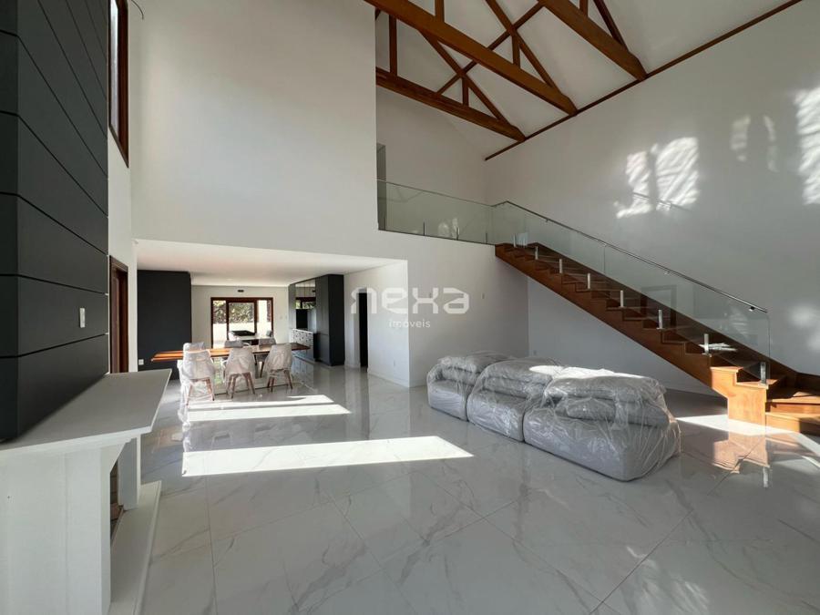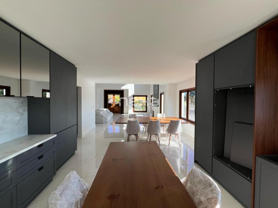 Composta por 04 suítes sendo 01 térrea, todas com closet, amplo living integrado com lareira, cozinha com espera para ilha, lavabo, área de serviço, garagem coberta para 02 carros, churrasqueira, pátio na frente e nos fundos. Casa totalmente cercada e com amplo terraço no andar superior!
