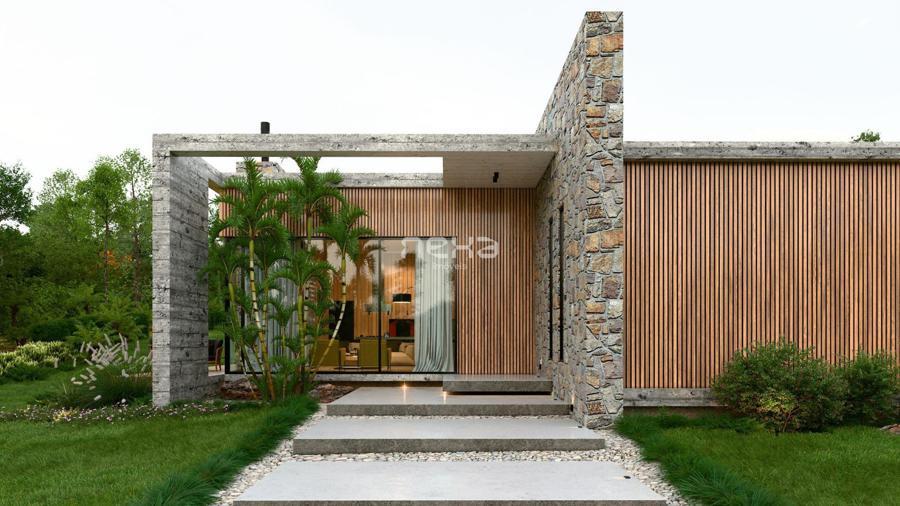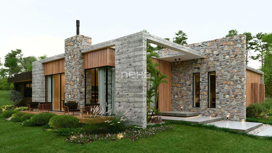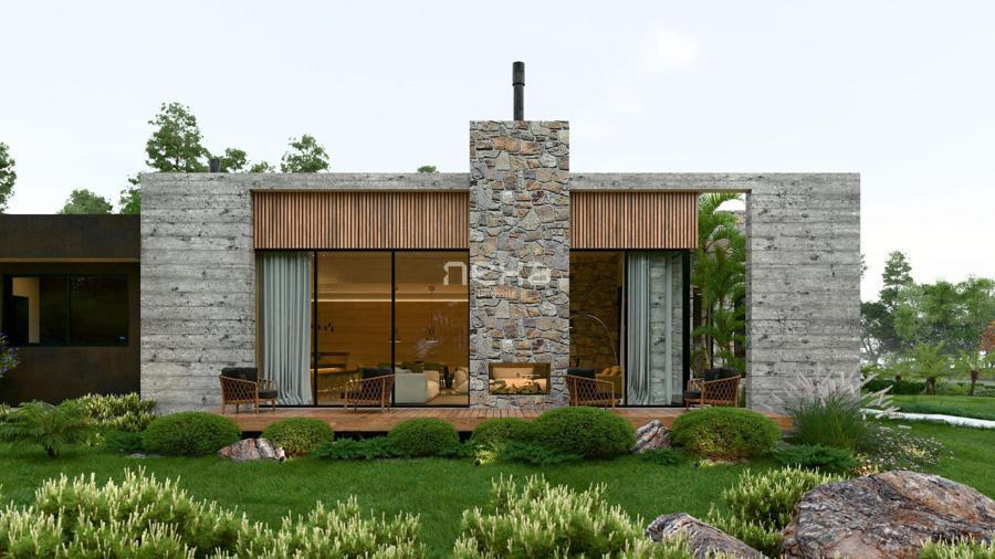 Destacando-se pela combinação harmoniosa de pedras, concreto e madeira em sua arquitetura. Este projeto foi concebido para oferecer conforto e sofisticação, mantendo uma forte conexão com a natureza e um design contemporâneo.