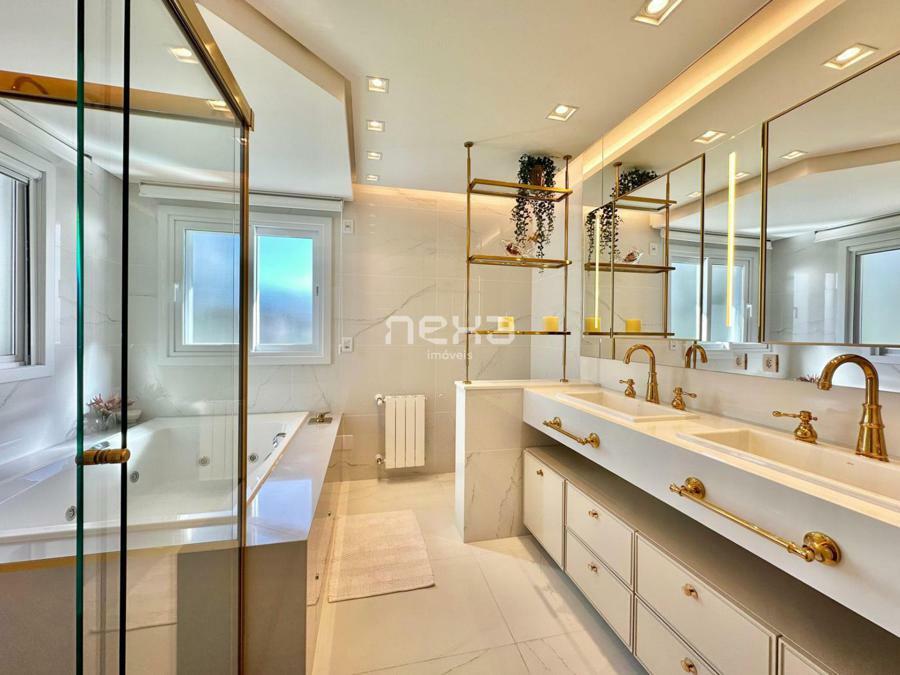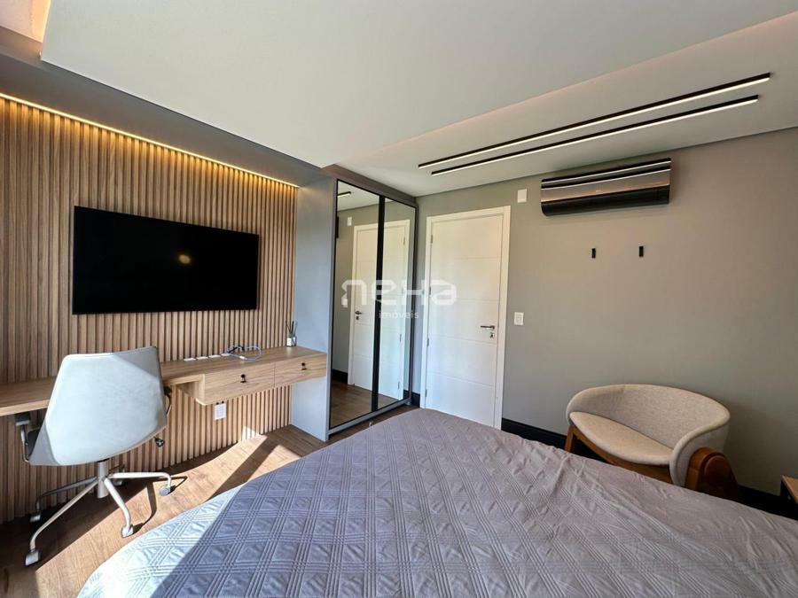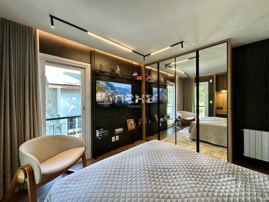 - Suíte master conta com lareira de alto desempenho para lenha, conjunto super king vivar sleep, closet alto padrão e banheiro com dois chuveiros, duas pias e jacuzzi dupla