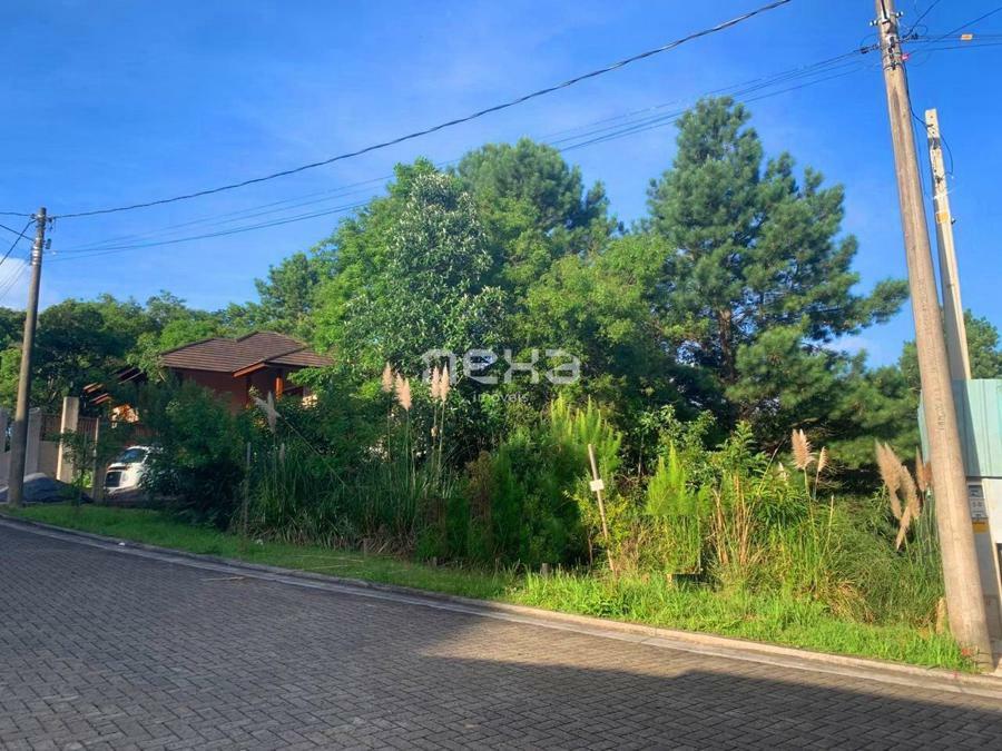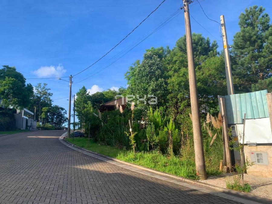 Terreno em declive, com vista, localizado na parte central do loteamento Vivendas do Arvoredo, medindo 487,39m² de área total, sendo 17,73m de frente para a rua. Possui projeto aprovado para construção de residência de 288,88m².